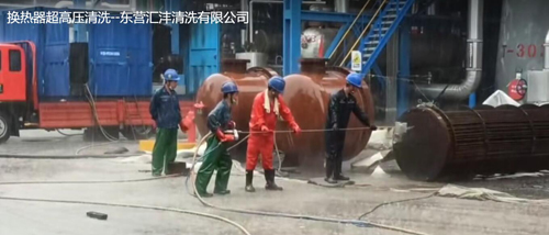 東營清洗--彙灃清洗公司為客戶進行換熱器超高壓清洗,專業的清洗技術人員,業務熟練,高品質的清洗服務。